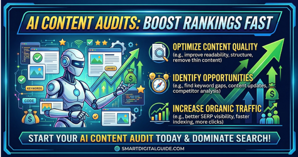 At SMARTDIGITALGUIDE, we’ve seen how a proper AI content audit can quickly highlight what’s holding your rankings back.